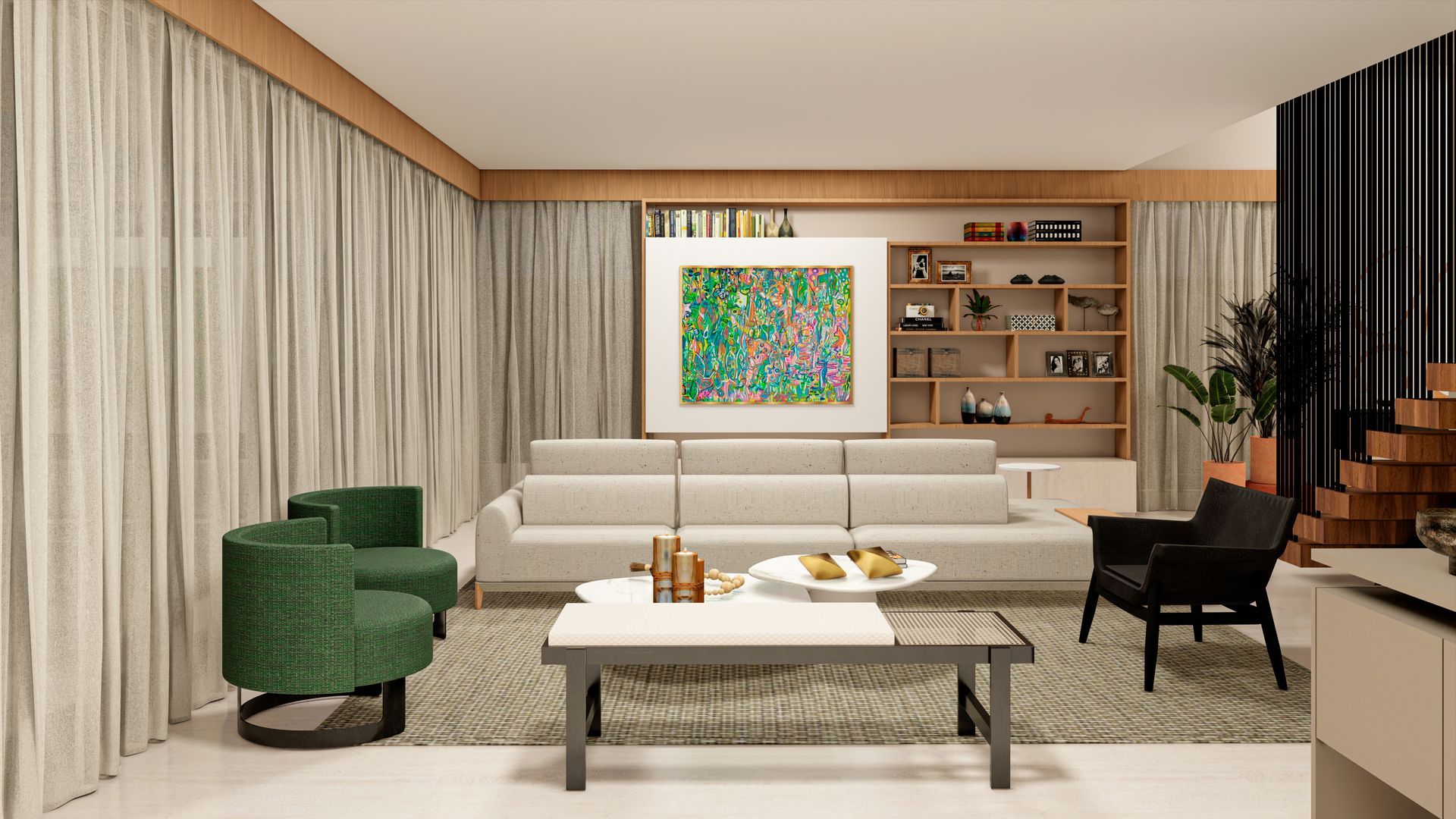 Este projeto combina elegância e funcionalidade, criando um ambiente acolhedor e sofisticado.